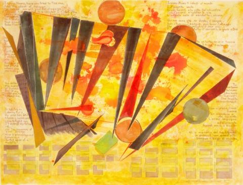 Harriet Lindemann once again exhibits her unique paintings at Gallery Framing in July. Arrangements is a Harriet's work focuses on how different people may interpret the word "arrangement": family arrangements, music arrangements, furniture arrangements. Her techniques are as varied as the art works. She often combines several techniques in novel arrangements: freezing watercolor paint, using some mixed media and collage elements, using decalcamania, and interpreting the word, "arrangements", in a loose Rorschach fashion.