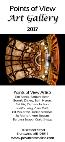 Points of View Artists will present five shows in 2017. The Main Gallery exhibits will take place May through September at the Points of View Art Gallery in the Brunswick Business Center. Topics range from food to echoes with three other interesting stops in between. The series is as follows: