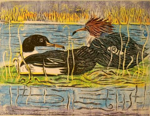 linocut reduction print, 9" x 12"
