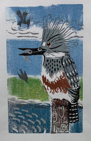 Linocut reduction print, 8X12 inches